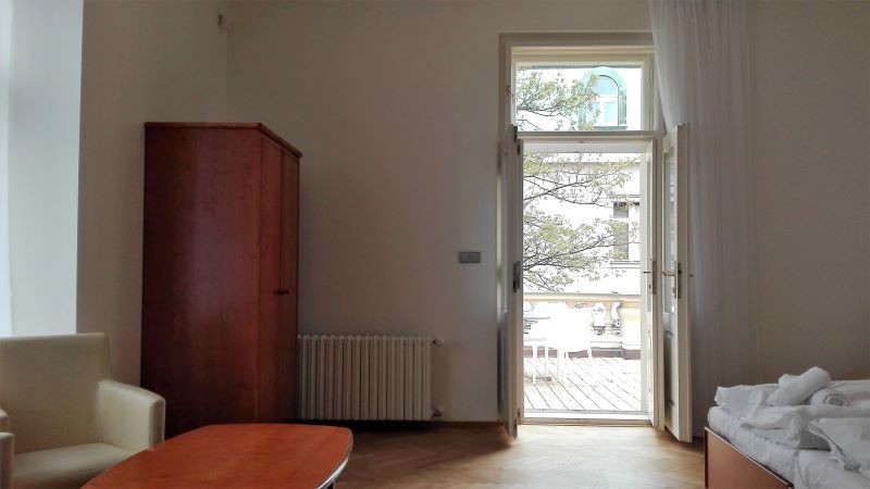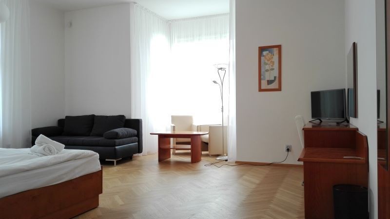 Apartmá s vlastní koupelnou, klimatizací a posezením.